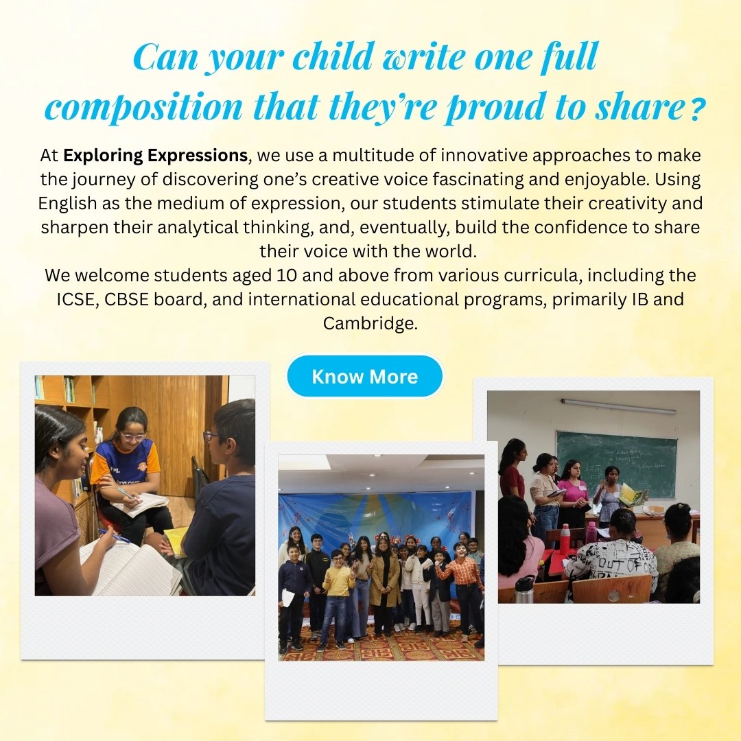 Exploring Expressions works towards the holistic development of English language skills for kids from 5th grade to 12th grade. We also help working professionals and career aspirants gain confidence and fluency in speaking English. Additionally, we assist students clear the CUET-UG English section.